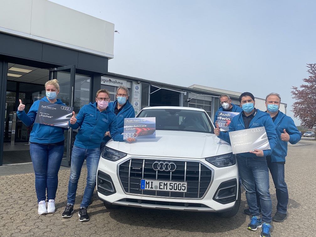 Ingolstadt, 10. Mai 2021 – Audi zeichnet beim 21. „Audi Twin Cup“-Finale herausragende Leistungen im Service aus: Das Team des Autohaus Schmale hat die Jury beim Deutschland-Finale mit ausgeprägter Kundenorientierung und vertieften Kenntnissen in den Bereichen Elektrifizierung und Digitalisierung überzeugt. Damit sicherte es sich den 5. Platz bei der deutschlandweiten Servicemeisterschaft von Audi. Die Mitarbeiter_innen von Firma Schmale gehören mit dieser Top-Platzierung zu den besten deutschen Service-Teams.